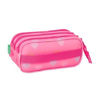 ¡Organiza tu día con estilo Benetton! 💖 Este portatodo doble juvenil con diseño ‘Heart’ en rosa es ideal para llevar tus útiles con tendencia y funcionalidad. ✨