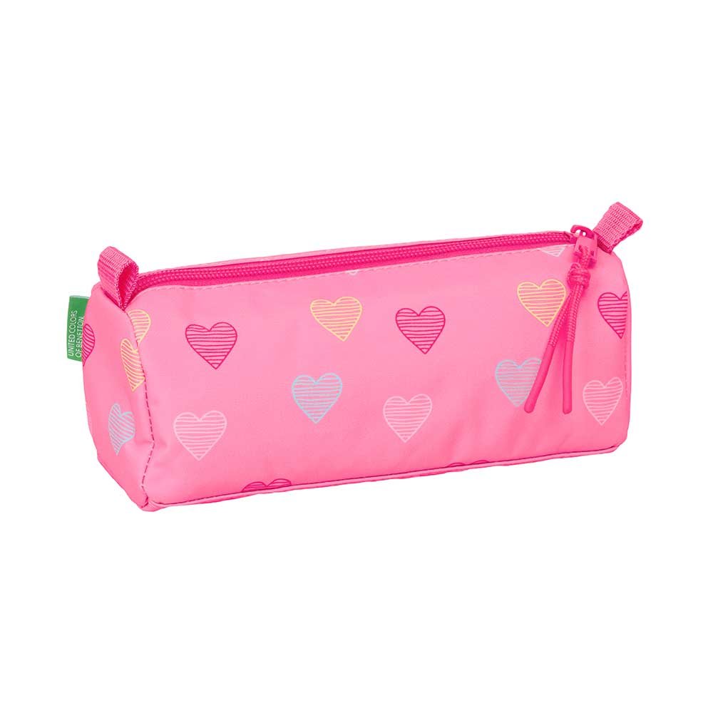 ¡Organiza tu día con estilo Benetton! 💖 Este portatodo doble juvenil con diseño ‘Heart’ en rosa es ideal para llevar tus útiles con tendencia y funcionalidad. ✨