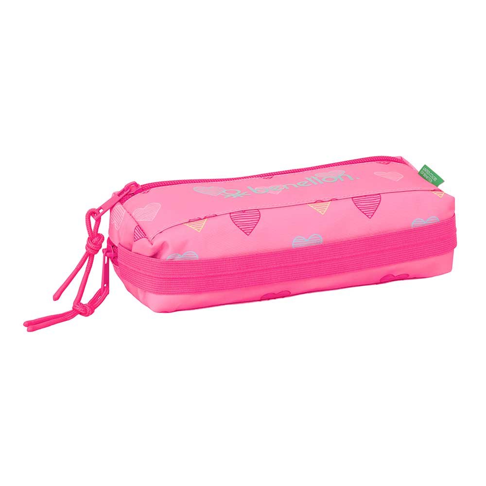 Benetton «Heart» Portatodo Triple Pequeño Rosa con Goma Elástica