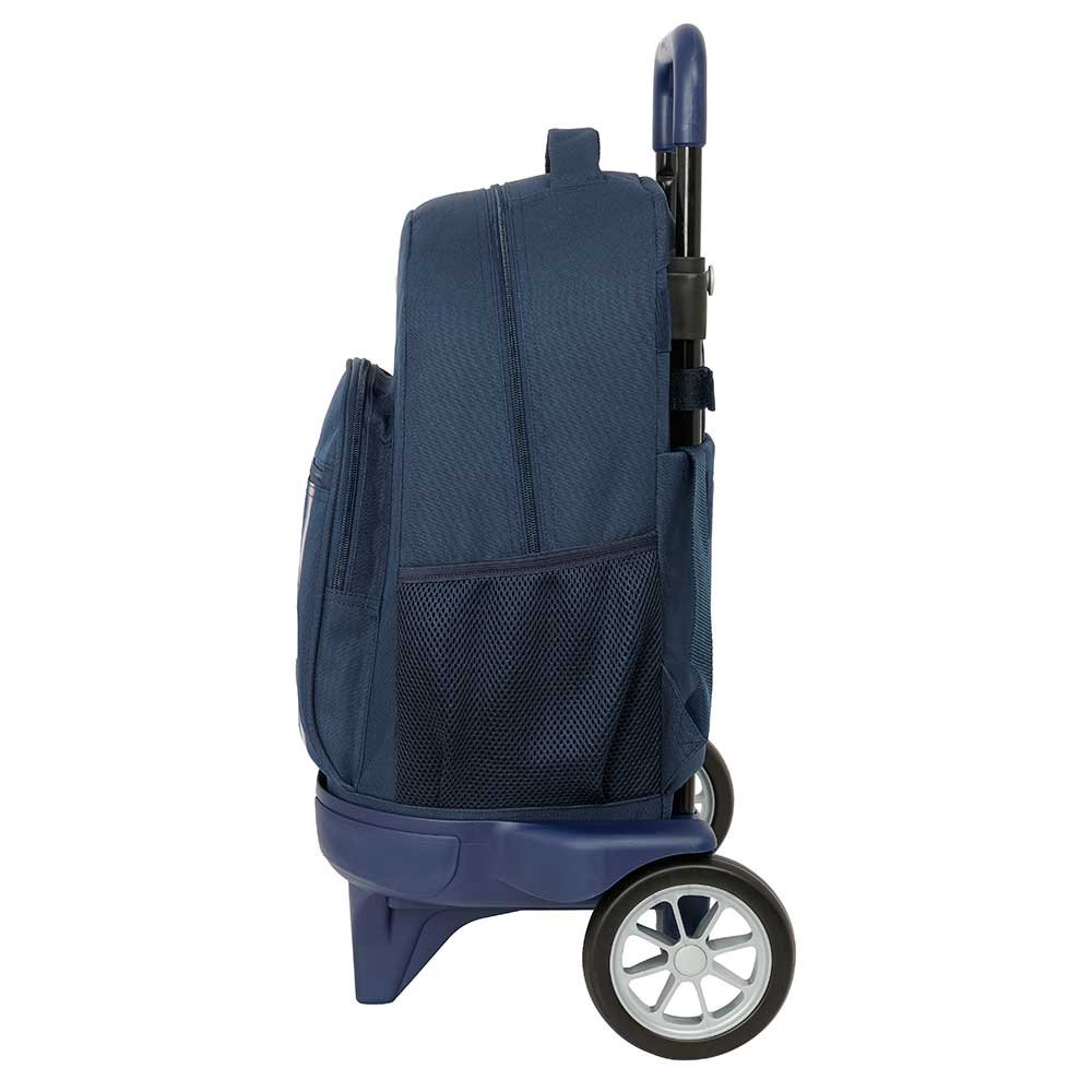 Presentada por SuperMochilas, esta mochila oficial del Real Madrid combina un diseño ergonómico de alta calidad con el carro Evolution patentado. Diseñado para ofrecer una durabilidad extrema y una experiencia ultra silenciosa, este sistema protege la espalda de los más jóvenes permitiendo un desplazamiento suave y sin vibraciones. Ideal para niños de diferentes edades, cuenta con compartimentos espaciosos y es fácil de lavar.