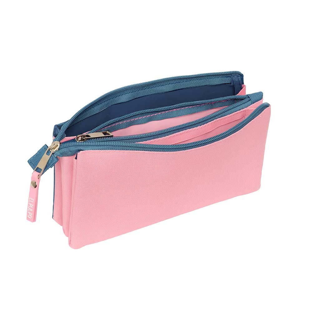 Este innovador portatodo cuenta con una estructura inteligente: tres compartimentos separados, cada uno con su propia cremallera, para una clasificación impecable. Además, incorpora un práctico bolsillo interior central, también con cremallera, ideal para guardar objetos más pequeños o de valor con total seguridad. Su resistente fabricación en poliéster garantiza durabilidad y fácil limpieza, soportando el ritmo de los niños más activos.