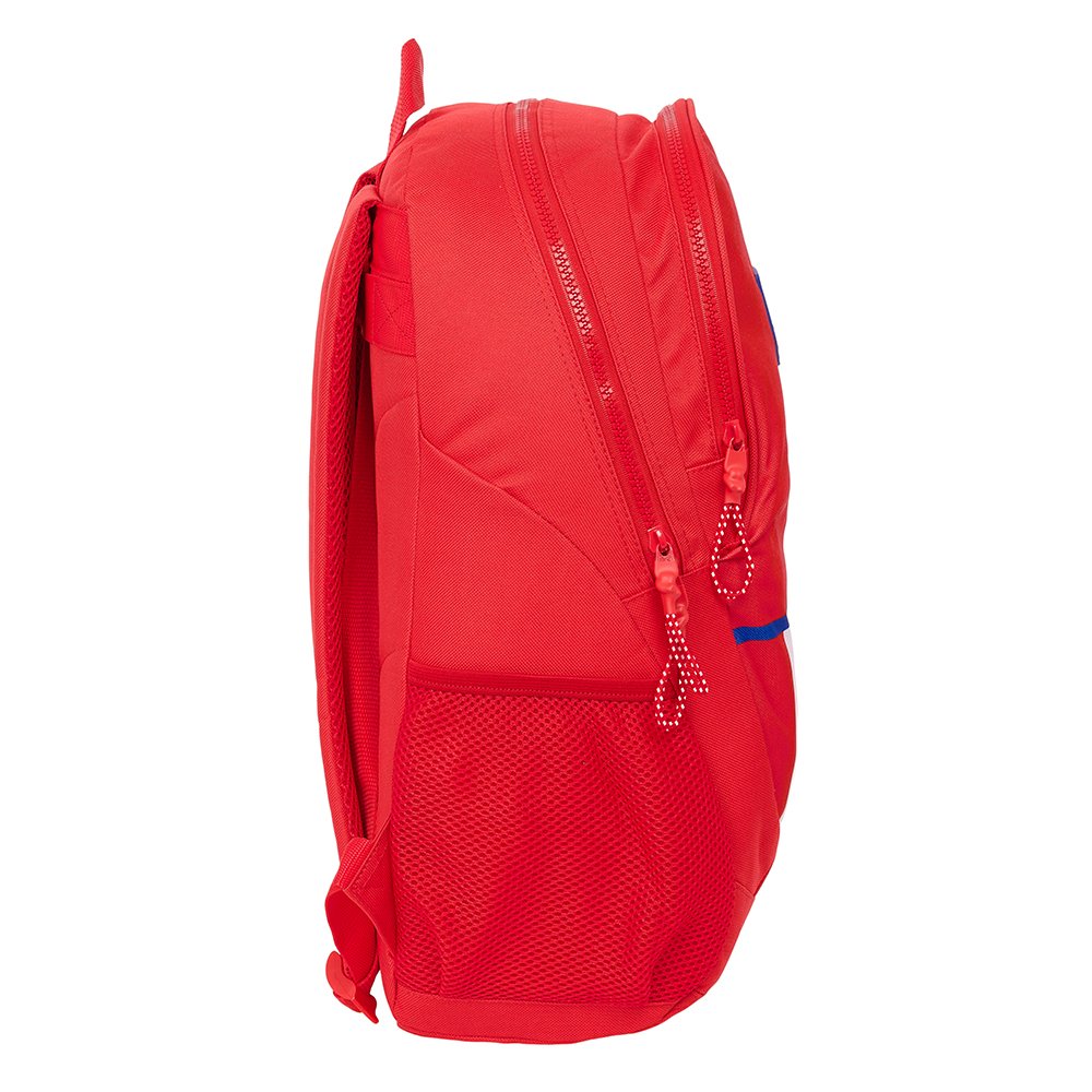 ¡Haz vibrar cada día escolar! 🔴 Mochila SAFTA oficial del Atco. Madrid, perfecta para jóvenes aficionados.