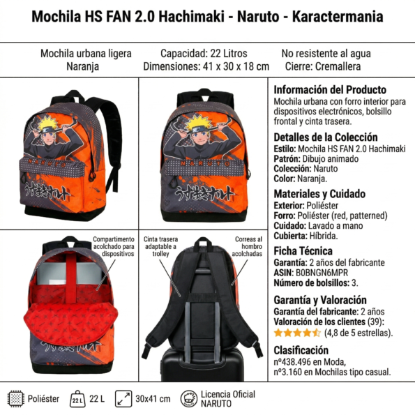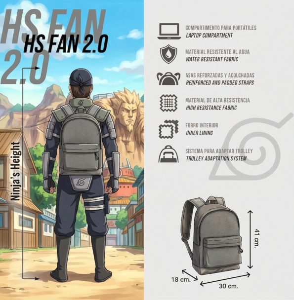Mochila Urbana Naruto Hachimaki HS FAN 2.0 – Edición Oficial SuperMochilas (Adaptable a Carrito)