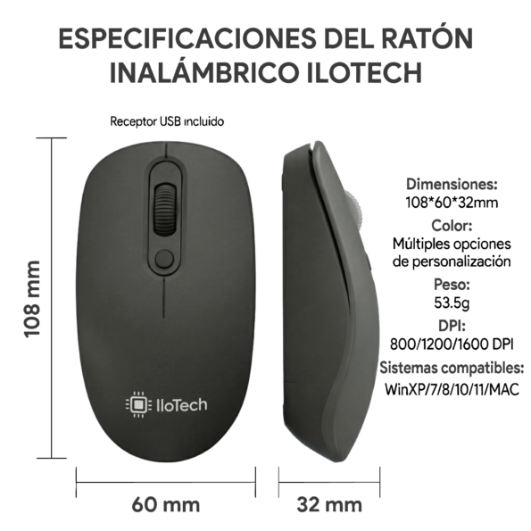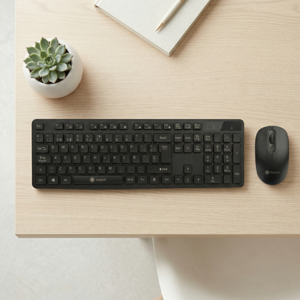 Pack Teclado y Ratón Inalámbrico IloTech – Combo Silencioso y Ergonómico 2,4 GHz