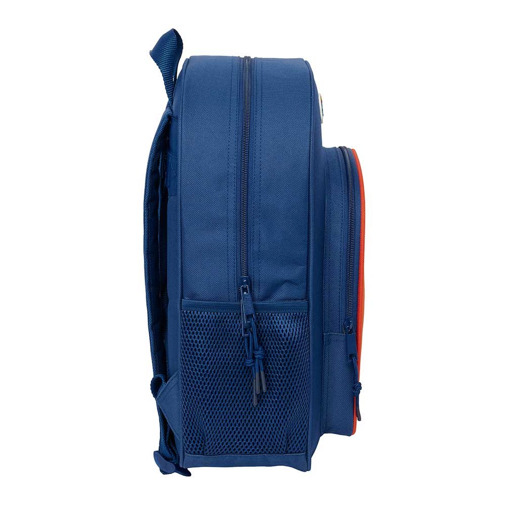 Con un amplio bolsillo frontal de gran formato, ideal para guardar sus cuadernos o el estuche, y prácticos bolsillos laterales diseñados para portar botellas de agua o zumos, la organización está asegurada. Además, un asa de mano en la parte superior permite cogerla fácilmente o colgarla cuando sea necesario.