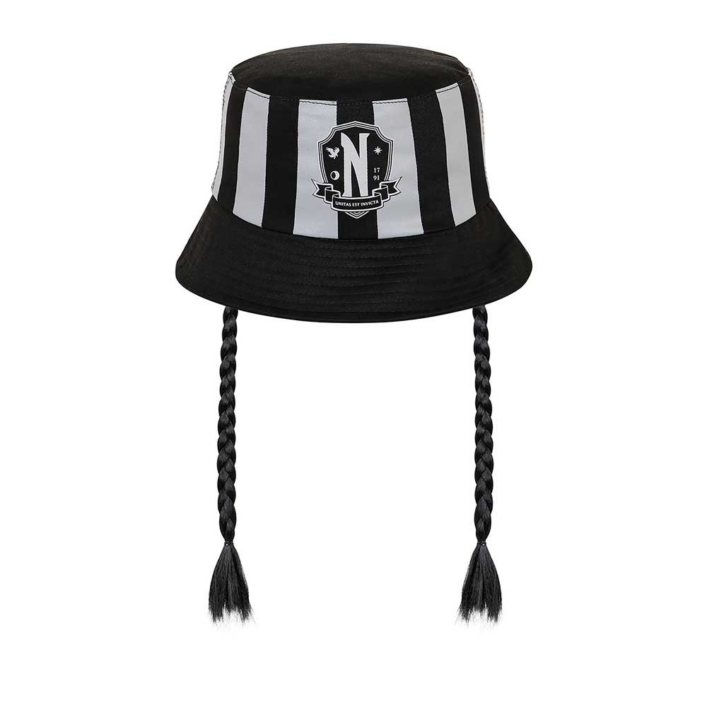 Descubre el estilo enigmático y sofisticado de Wednesday Addams con este exclusivo gorro tipo pescador infantil. Si tus hijos son fans de la Academia Nunca Más y el universo de Wednesday, este accesorio oficial de KARACTERMANIA es el complemento perfecto para mostrar su pasión con autenticidad y personalidad.