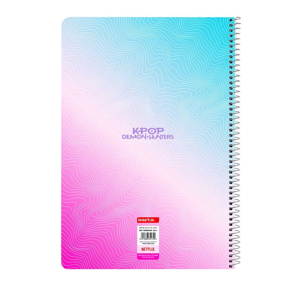 La resistencia es clave para el día a día escolar. Por ello, la Libreta K-Pop Demon Hunters incorpora tapas extraduras glasofonadas fabricadas en cartón, que protegen tus valiosas notas de golpes y el uso constante. 💪 Su robusta espiral metálica de 62 agujeros garantiza una apertura de 360 grados y una durabilidad excepcional, permitiendo que pases las páginas sin esfuerzo y sin miedo a que se desprendan. Disponible en vibrantes colores FUCHSIA y AZUL, elige el que mejor exprese tu espíritu. 💖💙