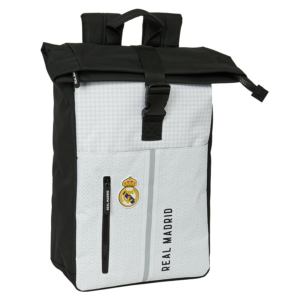 SuperMochilas presenta: «Real Madrid 1ª Equip. 24/25 Mochila Solapa Portátil 15.6» Blanco/Gris Oficial»