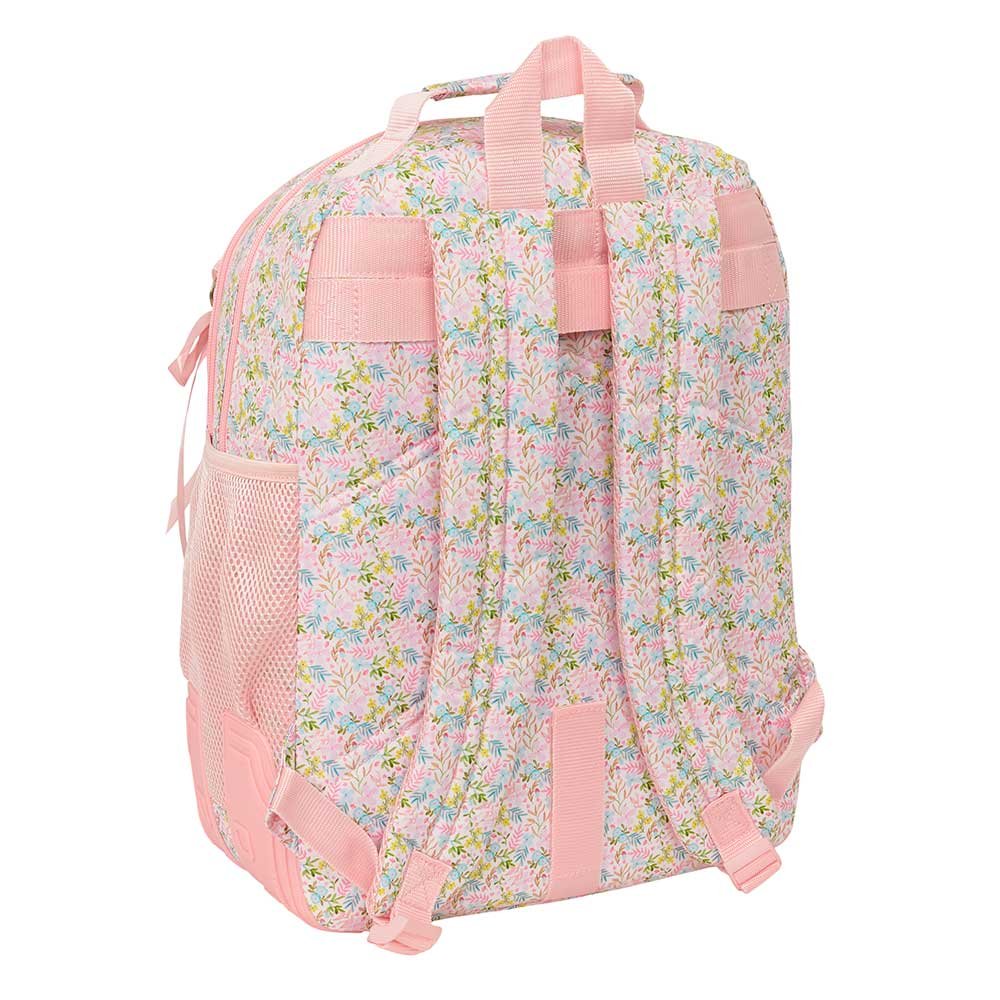 La organización nunca había sido tan chic y funcional. Esta mochila juvenil cuenta con dos amplios departamentos principales con cremallera, complementados por un doble bolsillo frontal que incluye un práctico organizador interior, ideal para tus gadgets, llaves o pequeños esenciales. Y para que no te falte hidratación, incorpora un bolsillo lateral diseñado para llevar tu botella de agua. Además, su diseño es completamente adaptable a un carro portamochilas, ofreciéndote la versatilidad de llevarla cómodamente a la espalda o rodando. 📚